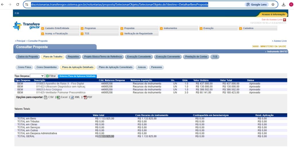 AQUISIÇÃO DE EQUIPAMENTO E MATERIAL PERMANENTE, parceira do HNSA com o Ministério da Saúde